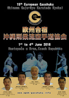 15. European Gasshuku järjestettiin Hustopecessä Tsekissä 1. - 4.6.2016. Opettajina toimivat senseit Koei Teruya 10. dan, Ryoichi Onaga 9. dan, Masanari Kikugawa 9. dan, Masataka Muramatsu 9. dan, Toshiro Fujioka 8. dan, Seigo Takara 7. dan ja Masatoshi Takenishi 7. dan. Suomesta osallistui leirille yhteensä kuusi osanottajaa. Tsekin TV:ssä esitetty uutinen leiristä löytyy tästä (alkaa 10.44 ja päättyy 14.54). Liitteet