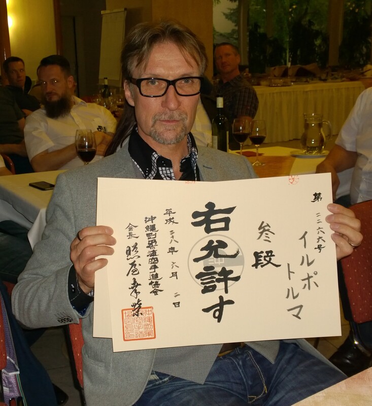 Ilpo Törmälle myönnettiin European Gasshukulla Hustopecessä Tsekissä 2.6.2016 pidetyssä vyökokeessa 3. danin vyöarvo.