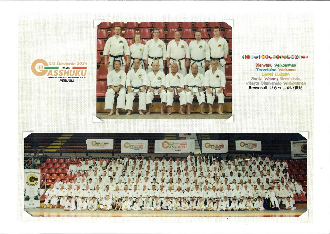 19. European Gasshuku järjestettiin Perugiassa Italiassa 13.-16.6.2024. Leirin opettajina toimivat senseit Ryoichi Onaga 10. dan, Masanari Kikugawa 10. dan, Seiei Hirata 9. dan, Seigo Takara 8. dan, Masatoshi Takenishi 8. dan ja Toshiro Fujioka 8. dan. Leirille osallistui yli 300 osanottajaa Euroopasta sekä Etelä- ja Väli-Amerikasta. Suomesta leirille osallistuivat Jouni Hirsimäki, Matti Saarinen, Juha-Pekka Sura, Kari Kotilainen, Tiina Toivanen ja Mikko Freese. Suomen edustajat osallistuivat myös leirin lopussa pidettyyn näytökseen. Video Suomen esityksestä on liitteenä. Lisää valokuvia leiristä löytyy tästä. Liitteet
